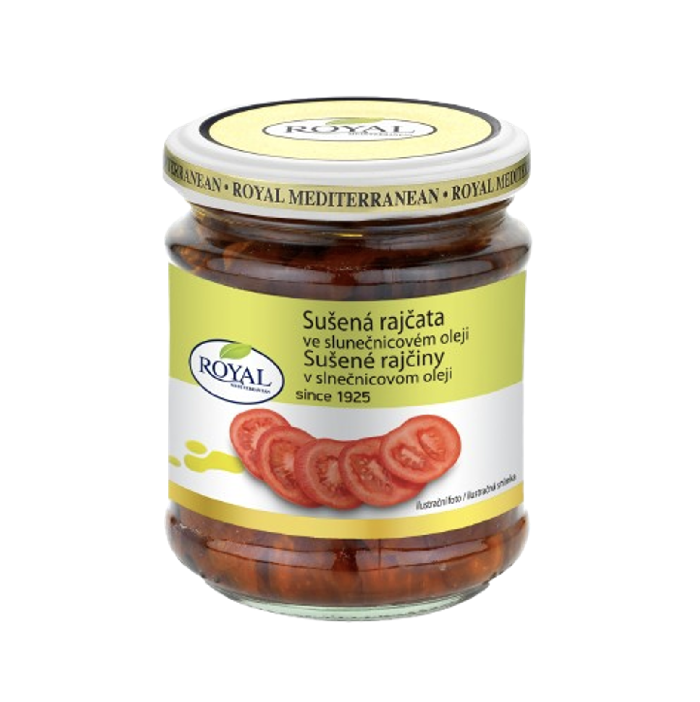 Sušená rajčata ve slunečnicovém oleji Royal jsou jedinečné svou chutí a vysokou kvalitou řeckých surovin. Výborný doplněk např. ke grilovanému masu, salátů a sendvičů.